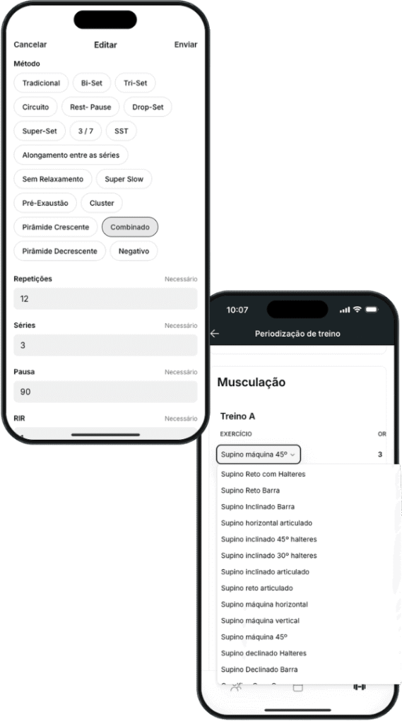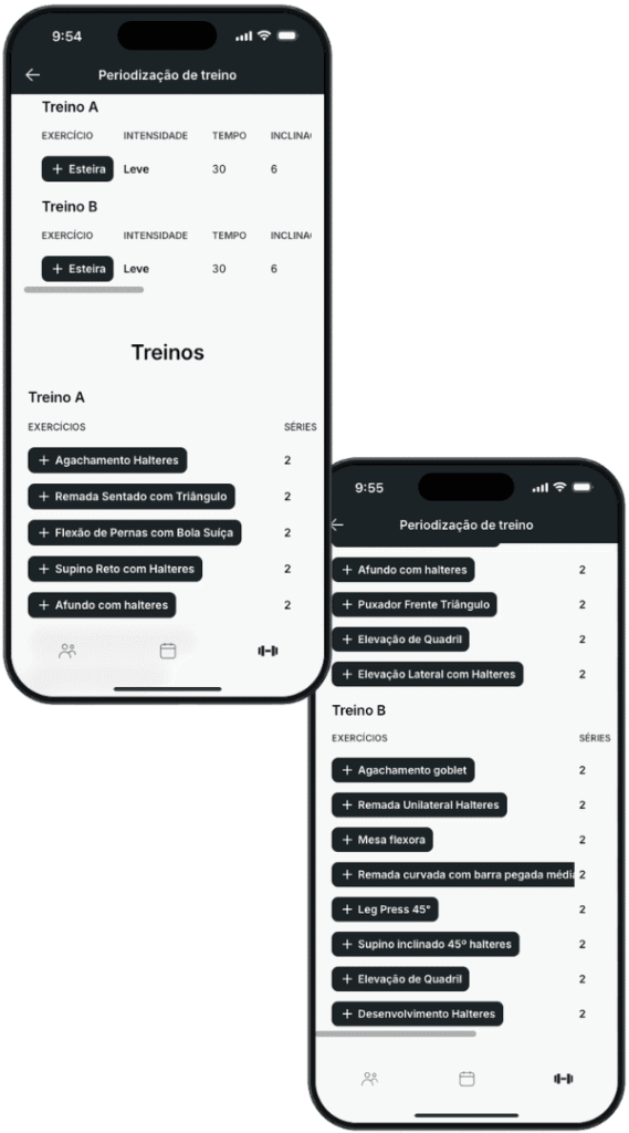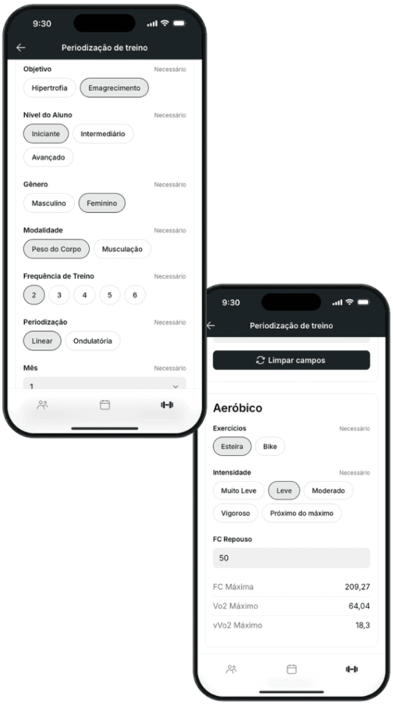 Insira os dados do seu aluno e o aplicativo faz toda a periodização é só seu aluno acessar seu aplicativo e visualizar o treino